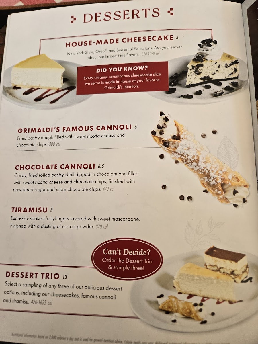 This blend of hearty pizza, fresh salads, and indulgent desserts fits naturally with the warm, inviting atmosphere that encourages guests to relax and savor their time, whether taking a break from sightseeing or enjoying a casual meal with family and friends.