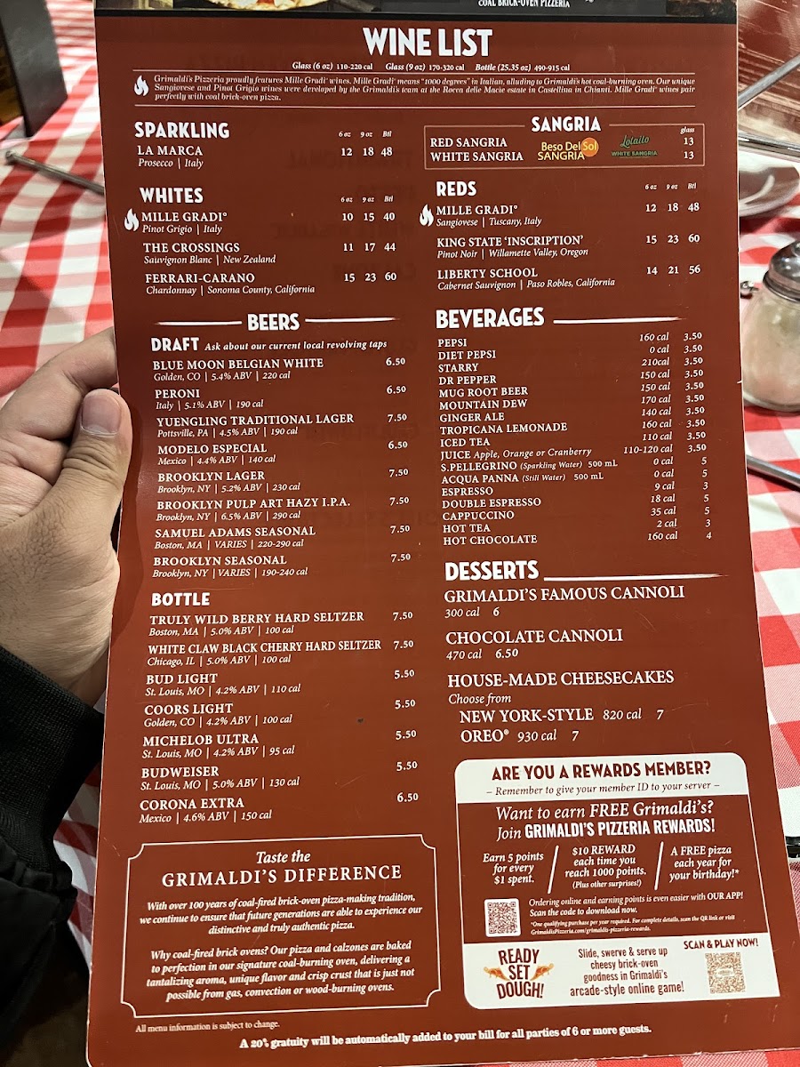 The menu at Grimaldi's Pizzeria offers a welcoming selection of Italian classics served in a casual, family-friendly setting. Expect comforting and familiar dishes that pair well with the relaxed atmosphere beneath the Brooklyn Bridge, making it an ideal spot for both laid-back lunches and relaxed evening gatherings.